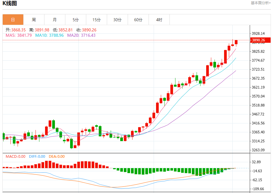 周四盘中,现货黄金报3890.21,涨幅0.64%。 今日分析:在3852.00之上,看涨,目标价位为3894.00,然后为3915.00。 技术点评:RI技术指标呈现继续上升趋势。 支撑位:3852.003834.003819.00 阻力位:3920.003915.003894.00 (亚汇网编辑:冰凡)