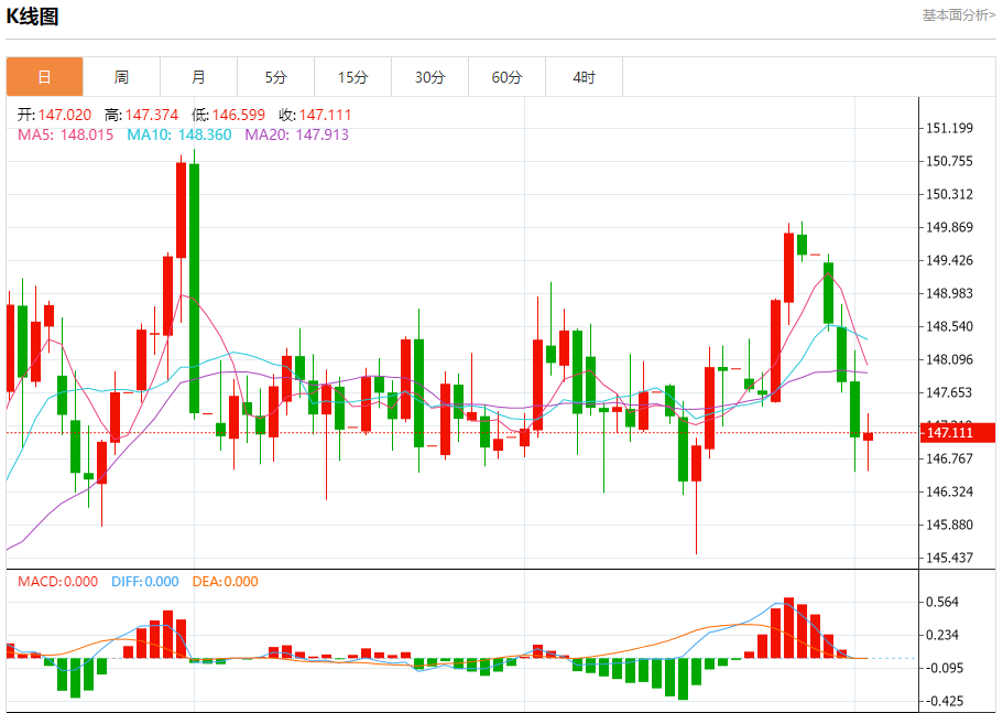 周四纽盘,美元兑日元交投于146.808,跌幅为0.18%。 日元基本面分析 日本央行副行长内田真一重申了该行的政策立场,即如果经济前景得以实现,将提高利率。 内田在东京举行的一个会议上发表演讲时表示,央行将不带任何先入为主的观念观察经济前景是否能够实现。