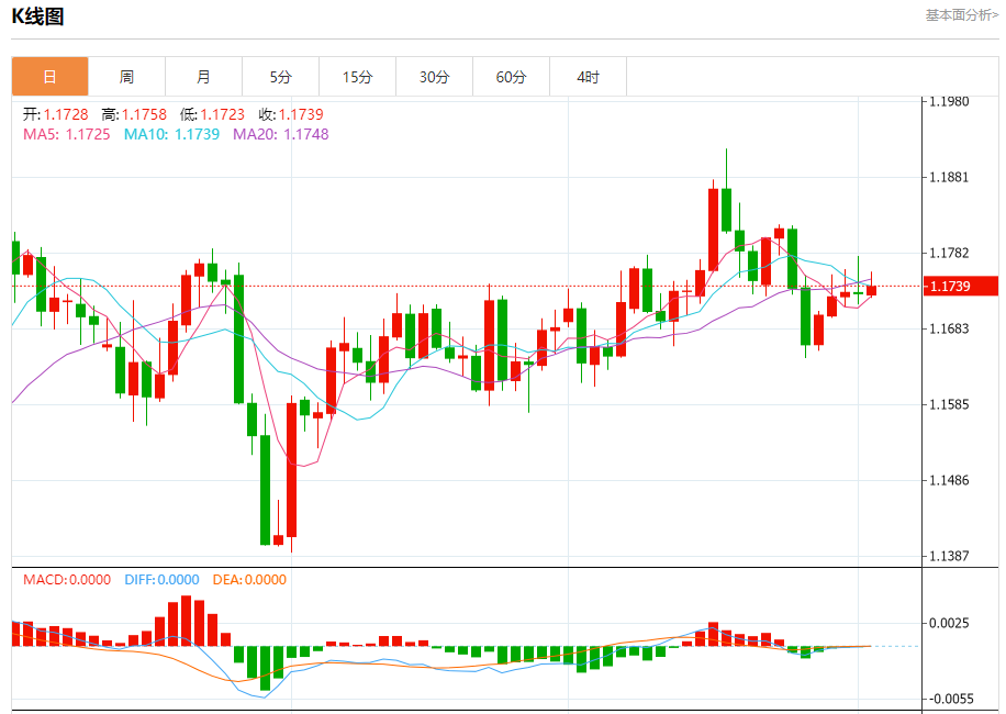 周四盘中,欧元/美元报1.1740,涨幅0.07%。 今日分析:在1.1720之上,看涨,目标价位为1.1760,然后为1.1780。 技术点评:即使我们不能排除持续调整的可能性,其时间长度上,应该是有限的。 支撑位:1.17201.17051.1690 阻力位:1.18001.17801.1760