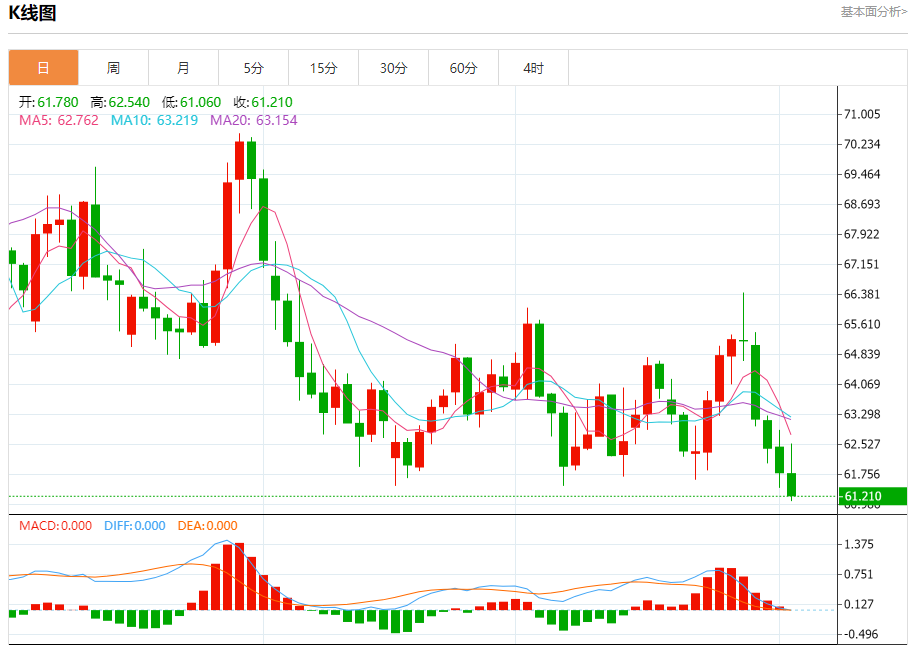 周四盘中,WTI原油报61.230,跌幅0.89%。 今日分析:在62.20之下,看跌,目标价位为61.10,然后为60.80。 技术点评:只要依旧存在62.20阻力位,价格波动存在看跌的趋势。 支撑位:61.1060.8060.60 阻力位:63.5062.8062.20 (亚汇网编辑:冰凡)
