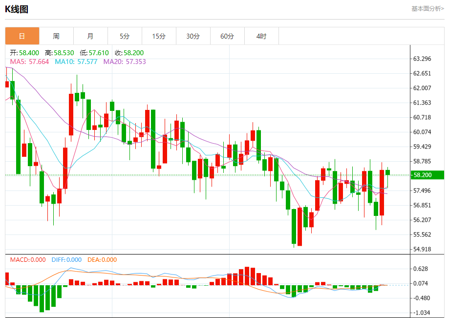 周五盘中,WTI原油报58.210,涨幅0.80%。 今日分析:在57.20之上,看涨,目标价位为58.50,然后为59.05。 技术点评:即使我们不能排除持续调整的可能性,其时间长度上,应该是有限的。 支撑位:57.2056.7556.40 阻力位:59.6059.0558.50 (亚汇网