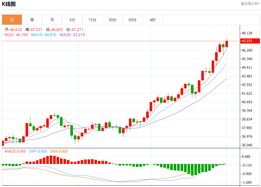 周三盘中,现货白银报47.250,涨幅1.35%。 今日分析:在46.60之上,看涨,目标价位为47.60,然后为48.20。 技术点评:RI技术指标看涨,有进一步向上趋势。 支撑位:46.6046.2045.80 阻力位:48.5048.2047.60 (亚汇网编辑:冰凡)
