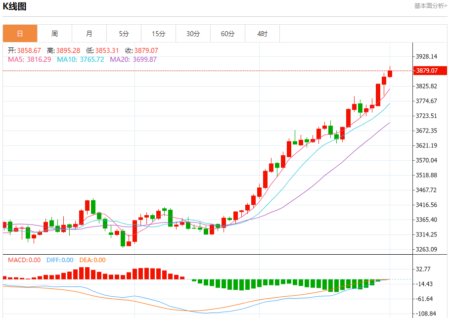 周三盘中,现货黄金报3875.73,涨幅0.45%。 今日分析:在3852.00之上,看涨,目标价位为3905.00,然后为3925.00。 技术点评:RI技术指标呈现进一步上升趋势。 支撑位:3852.003834.003819.00 阻力位:3950.003925.003905.00 (亚汇网编辑:冰凡)