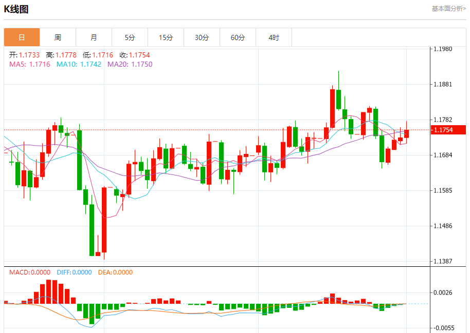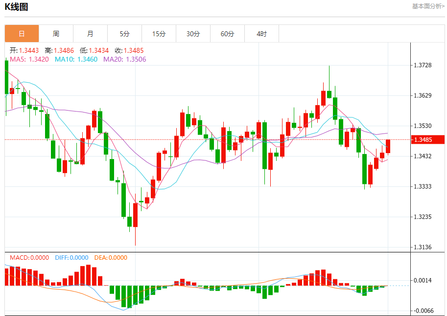 周三盘中,欧元/美元报1.1761,涨幅0.24%。 今日分析:在1.1710之上,看涨,目标价位为1.1755,然后为1.1775。 技术点评:RI技术指标刚达到30%重要支撑区域附近,并向上反转。 支撑位:1.17101.17001.1690 阻力位:1.17851.17751.1755 (亚汇网编