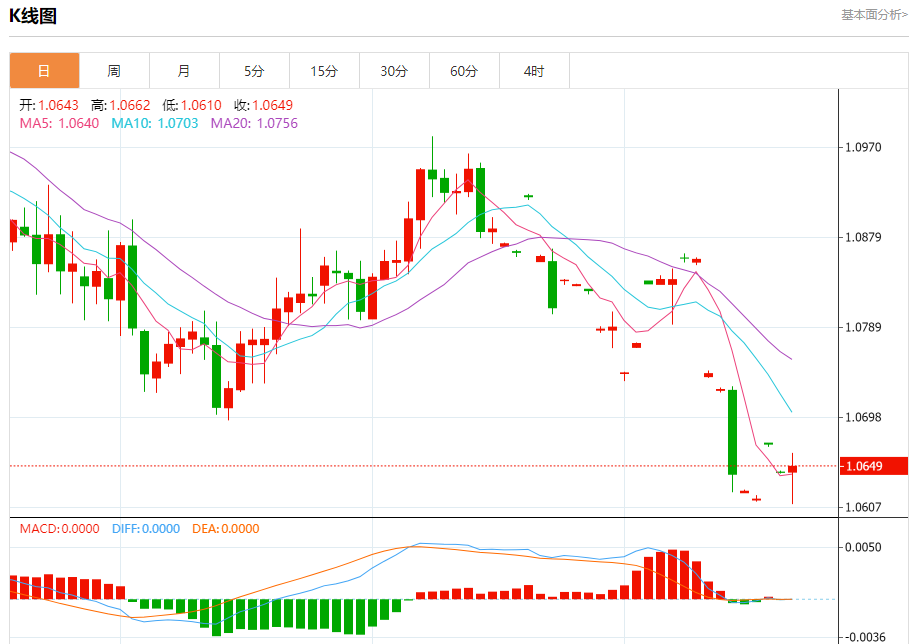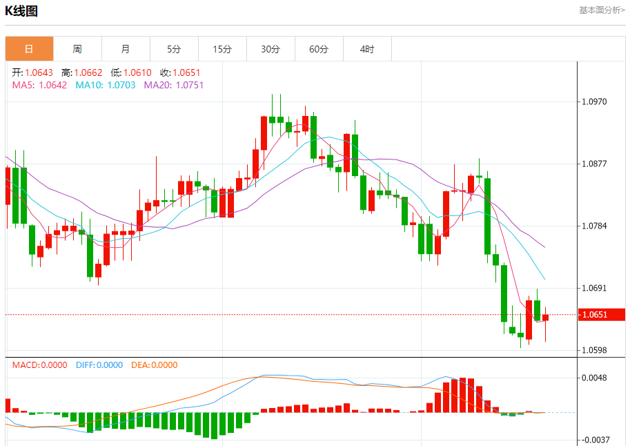 周五晚间,美元指数现报106.095,跌幅0.07%,现对美元兑欧元、英镑、日元主要货币对分析表述如下: 欧元/美元 汇价高见1.0662,低见1.0610。上一交易日,汇价收于1.0643。 基本面:欧洲央行管委表示,与近年来大宗商品市场的波动相比,能源价格的飙升对欧洲通胀构成的危险要