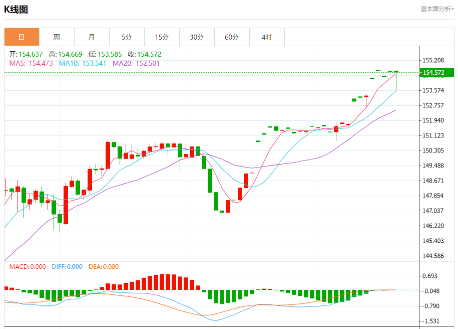 今日周五,欧元兑美元报1.0655,涨幅0.10%;英镑兑美元报1.2442,涨幅0.04%;美元兑日元报154.609,跌幅0.03%。 欧元兑美元汇率分析 技术点评:RI技术指标运行趋势复杂,倾向于上涨。 阻力位:1.06901.06751.0660 支撑位:1.06251.06101.0600 英