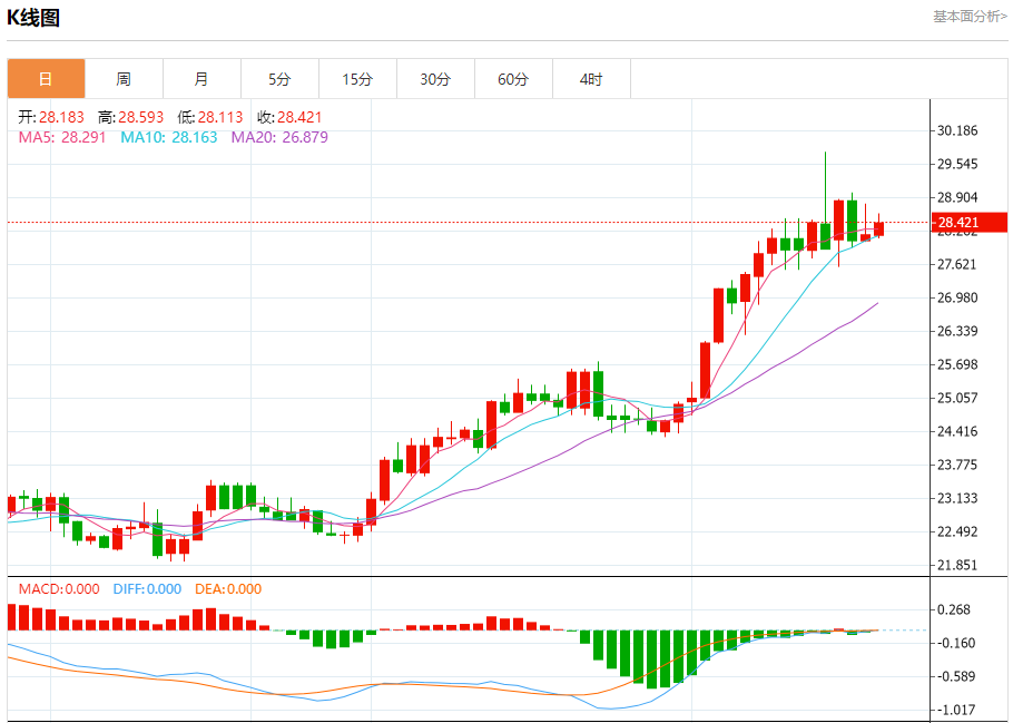 周四盘中,现货白银报28.455,涨幅0.94%。 今日分析:在28.15之上,看涨,目标价位为28.75,然后为29.00。 技术点评:RI技术指标缺乏下降动能 支撑位:28.1527.9527.70 阻力位:29.2029.0028.75 (亚汇网编辑:冰凡)