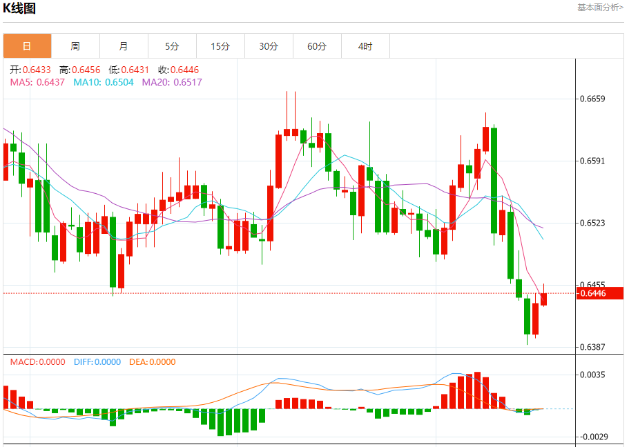 今日周四,澳元兑美元报0.6446,涨幅0.16%;美元兑加元报1.3752,跌幅0.16%;美元兑瑞郎报0.9090,跌幅0.21%。 澳元兑美元汇率分析 技术点评:RI技术指标运行趋势复杂,倾向于上涨。 阻力位:0.65200.64950.6475 支撑位:0.64250.64100.6395 美元