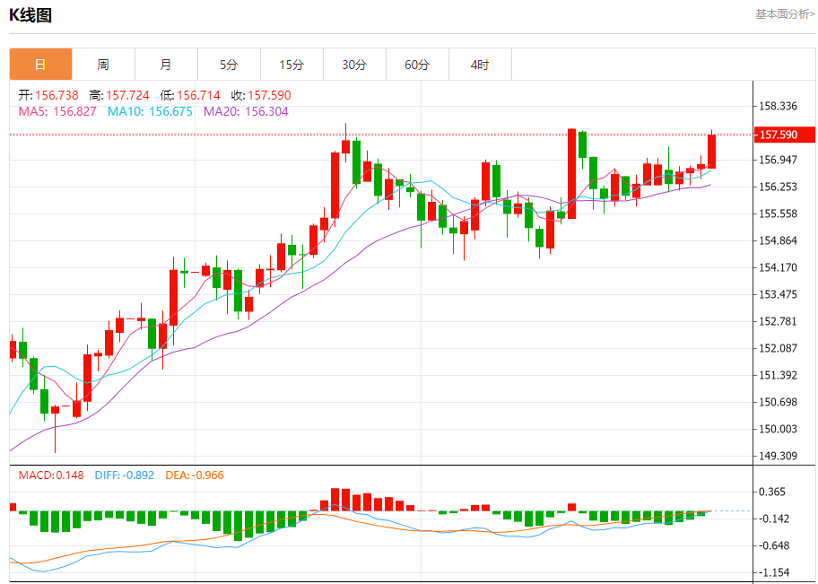 今日周五,截止目前美元兑日元报157.608,上涨0.48%。 日元基本面行情分析 知情人士称,尽管日本央行预计将保持基准利率不变,但预计将在本月会议上上调经济增长预期。日本央行可能会在1月23日发布的季度经济展望报告中,将4月开始的2026财年经济增长预期从0.7%上调,当前财年的经济预期也