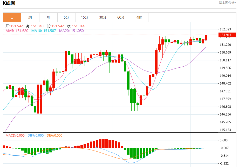 周一盘中,美元/日元报151.923,涨幅0.19%。 今日分析:在151.50之上,看涨,目标价位为151.95,然后为152.10。 技术点评:RI技术指标看涨,有进一步向上趋势。 支撑位:151.50151.25151.00 阻力位:152.30152.10151.95 (亚汇网编辑:冰凡)