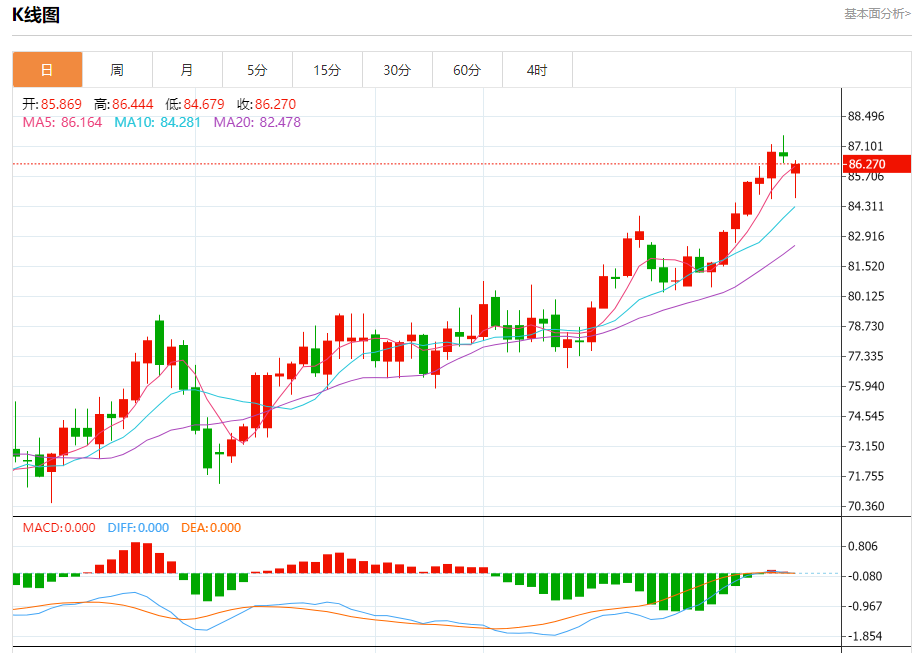 周一盘中,WTI原油报86.341,跌幅0.36%。 今日分析:在86.60之下,看跌,目标价位为85.35,然后为84.65。 技术点评:RI技术指标缺乏上升动能 支撑位:85.3584.6583.85 阻力位:87.6087.1086.60 (亚汇网编辑:冰凡)