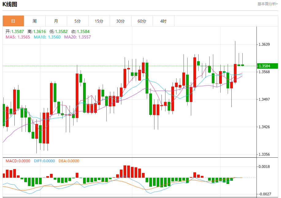今日周一,澳元兑美元报0.6590,涨幅0.17%;美元兑加元报1.3586,跌幅0.03%;美元兑瑞郎报0.9054,涨幅0.34%。 澳元兑美元汇率分析 技术点评:RI技术指标向上运行。 阻力位:0.66450.66300.6615 支撑位:0.65650.65500.6530 美元兑加元汇率分析