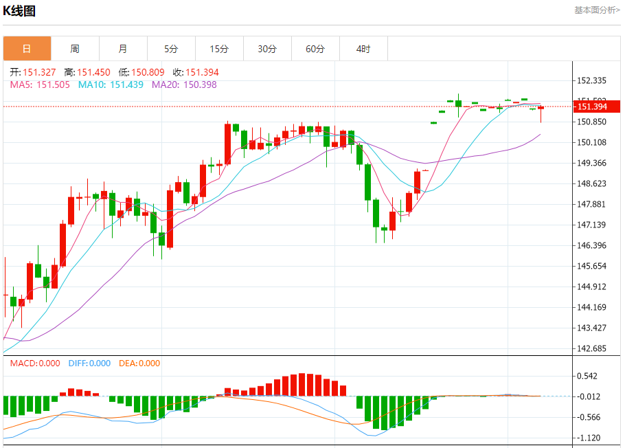 周五盘中,美元/日元报151.406,涨幅0.04%。 今日分析:在151.05之上,看涨,目标价位为151.55,然后为151.75。 技术点评:RI技术指标向上运行。 支撑位:151.05150.80150.60 阻力位:151.95151.75151.55 (亚汇网编辑:冰凡)