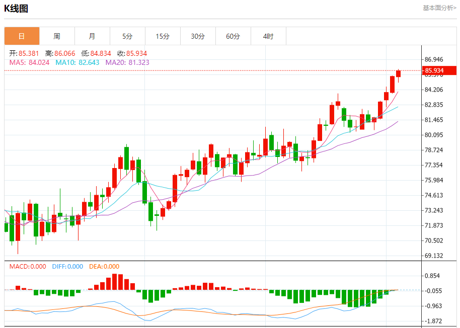 周三盘中,WTI原油报85.950,涨幅0.61%。 今日分析:在85.00之上,看涨,目标价位为86.30,然后为86.70。 技术点评:RI技术指标看涨,有进一步上升空间。 支撑位:85.0084.4584.15 阻力位:87.4086.7086.30 (亚汇网编辑:冰凡)