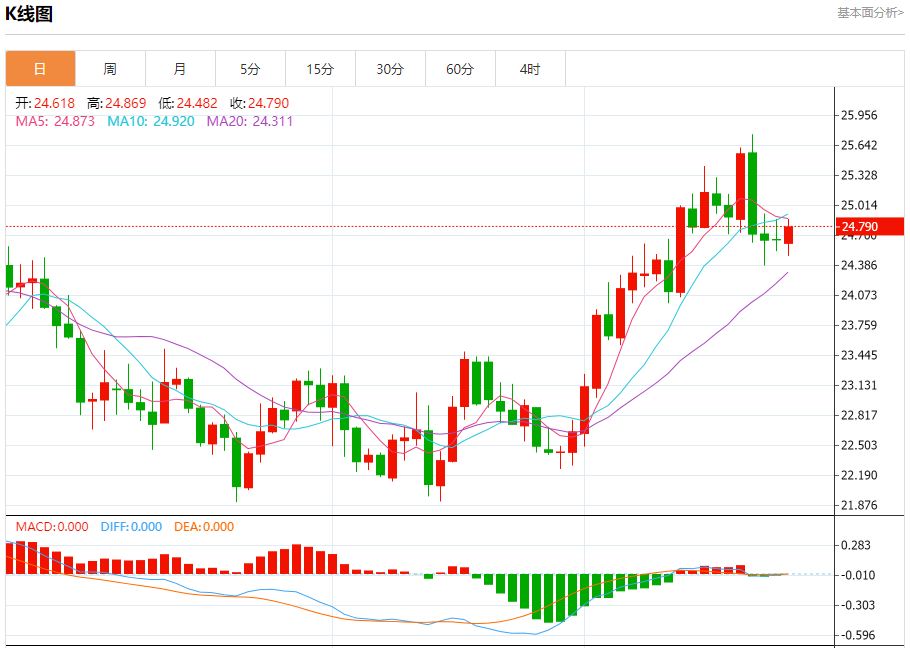 周二盘中,现货白银报24.713,涨幅0.23%。 今日分析:在24.60之上,看涨,目标价位为24.85,然后为24.95。 技术点评:RI技术指标看涨,有进一步上升空间。 支撑位:24.6024.5024.40 阻力位:25.0924.9524.85 (亚汇网编辑:冰凡)