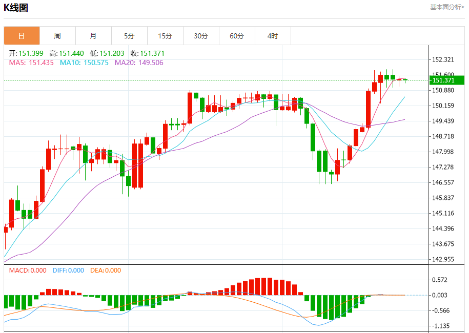 周二盘中,美元/日元报151.383,跌幅0.02%。 今日分析:在151.20之上,看涨,目标价位为151.55,然后为151.70。 技术点评:RI技术指标缺乏下降动能 支撑位:151.20151.00150.80 阻力位:151.85151.70151.55 (亚汇网编辑:冰凡)