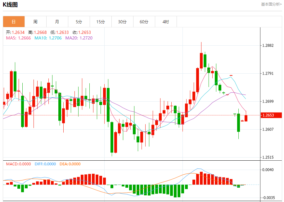 周二盘中,英镑/美元报1.2655,涨幅0.15%。 今日分析:在1.2630之上,看涨,目标价位为1.2675,然后为1.2690。 技术点评:RI技术指标向上运行。 支撑位:1.26301.26151.2595 阻力位:1.27051.26901.2675 (亚汇网编辑:冰凡)