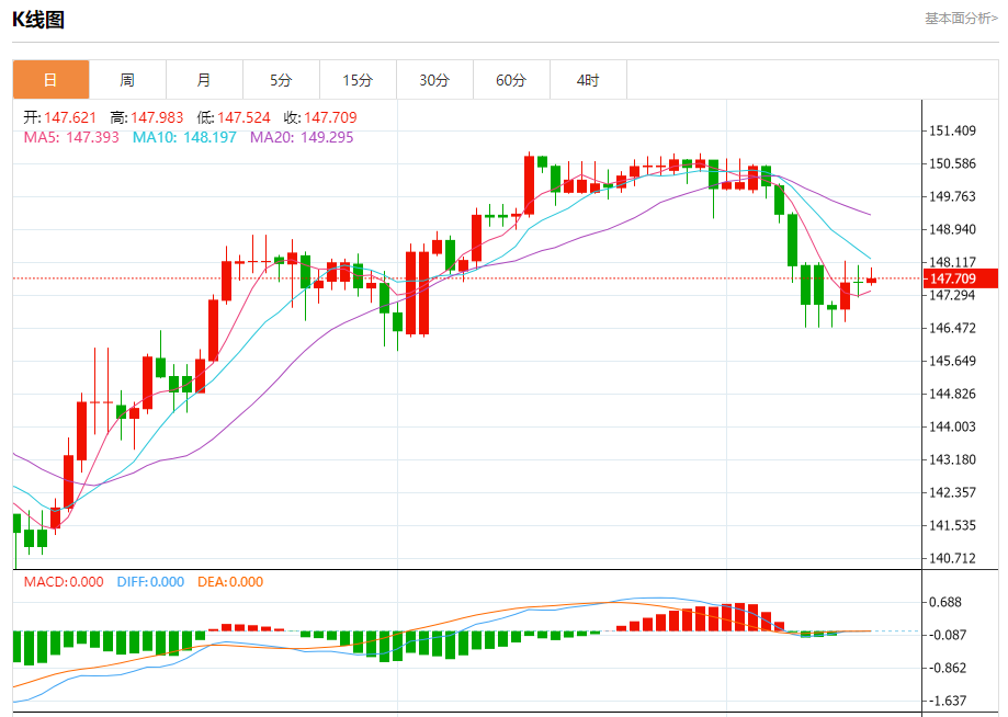 周四盘中,美元/日元报147.716,涨幅0.06%。 今日分析:在147.45之上,看涨,目标价位为148.15,然后为148.40。 技术点评:RI技术指标缺乏下降动能 支撑位:147.45147.20146.90 阻力位:148.60148.40148.15 (亚汇网编辑:冰凡)