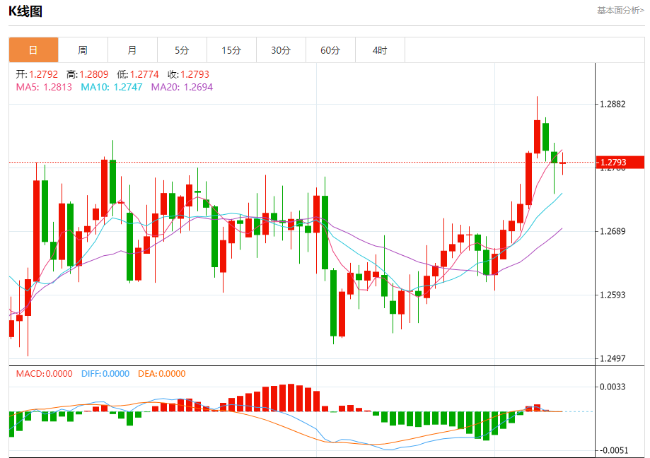 周三盘中,英镑/美元报1.2796,涨幅0.02%。 今日分析:在1.2810之下,看跌,目标价位为1.2770,然后为1.2760。 技术点评:上升的空间可能被1.2810阻力位所限制。 支撑位:1.27701.27601.2745 阻力位:1.28401.28251.2810 (亚汇网编辑:冰凡)