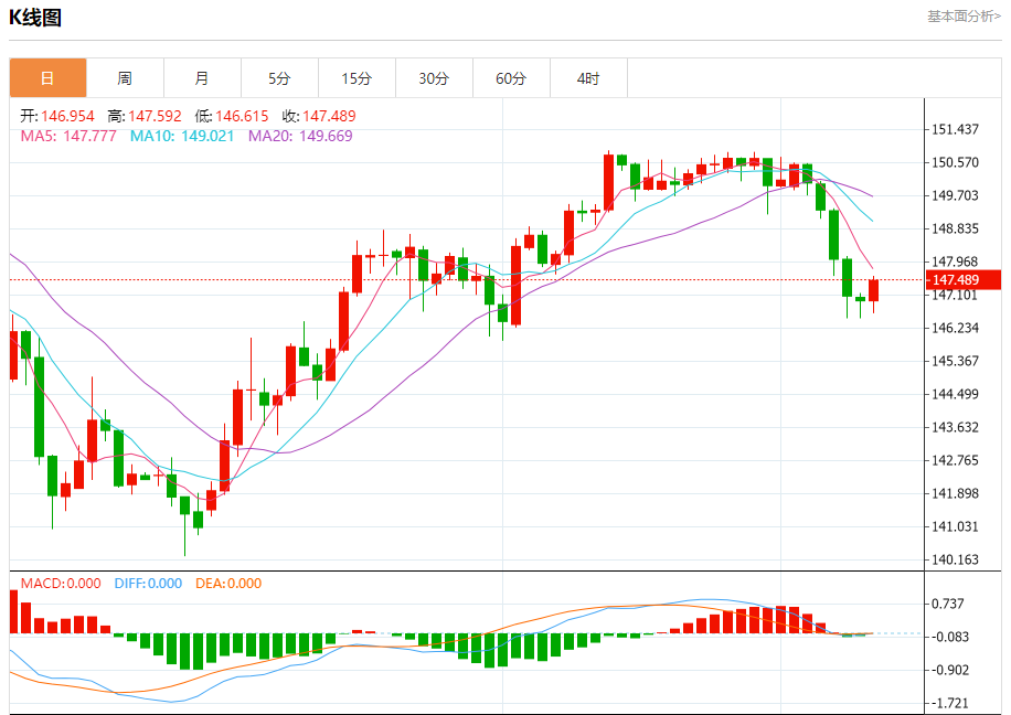 周二盘中,美元/日元报147.491,涨幅0.36%。 今日分析:在146.95之上,看涨,目标价位为147.75,然后为148.00。 技术点评:在146.95之上,为多头信号,向上的目标位为147.75。 支撑位:146.95146.45146.00 阻力位:148.30148.00147.75 (亚汇网编