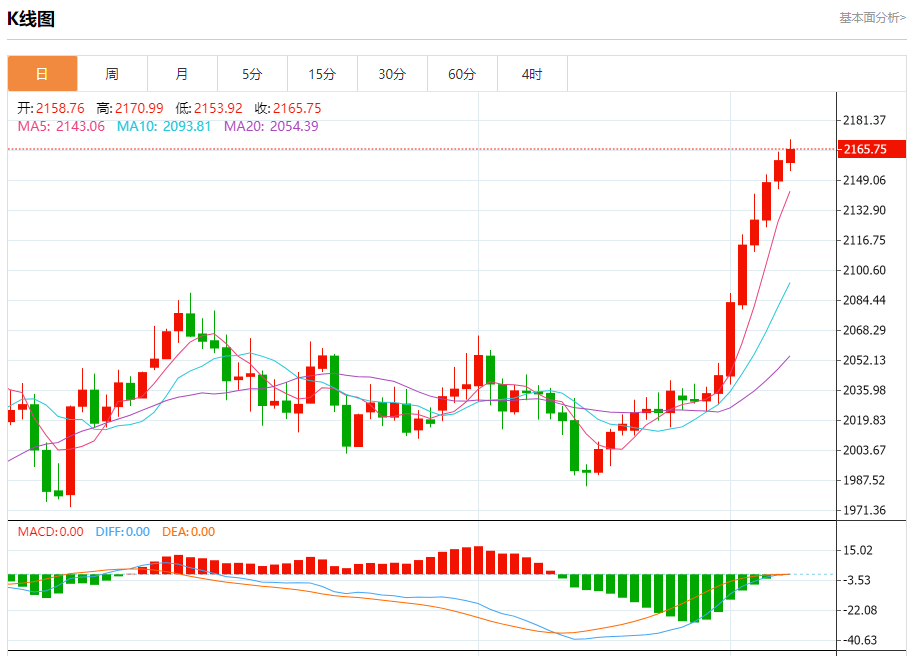 周五盘中,现货黄金报2165.96,涨幅0.29%。 今日分析:在2155.00之上,看涨,目标价位为2179.00,然后为2185.00。 技术点评:RI技术指标看涨,有进一步上升空间。 支撑位:2155.002148.002139.00 阻力位:2195.002185.002179.00 (亚汇网编辑:冰