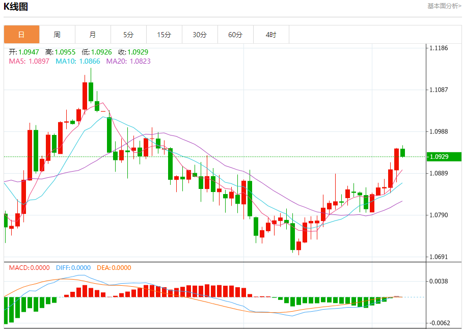 今日周五,截止目前欧元兑美元报1.0931,下跌0.16%。 欧元基本面行情分析 欧洲中央银行7日召开货币政策会议,决定继续维持三大关键利率不变。分析人士表示,欧洲央行向通胀回归目标又迈进一步,有关降息的议程或到6月才会揭晓。 欧洲央行当天发布公告说,欧元区关键利率在足
