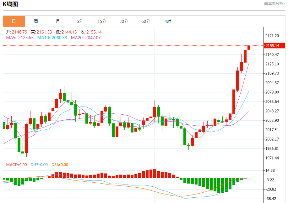 周三盘中,现货黄金报2134.63,涨幅0.30%。 今日分析:在2120.00之上,看涨,目标价位为2141.00,然后为2150.00。 技术点评:在2120.00之上,为多头信号,向上的目标位为2141.00。 支撑位:2120.002110.002095.00 阻力位:2160.002150.002141.00