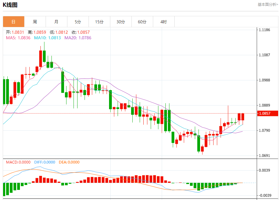 周一晚间,美元指数现报103.747,跌幅0.21%,现对美元兑欧元、英镑、日元主要货币对分析表述如下: 欧元/美元 汇价高见1.0855,低见1.0812。上一交易日,汇价收于1.0821。 日内建议:可以在1.0840---1.0800的区间上限卖出,有效破位30个点止损,目标在区间的下限。