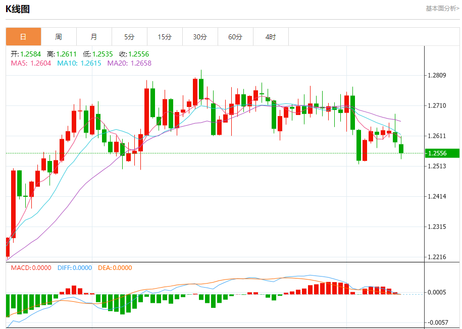 周三盘中,英镑/美元报1.2556,跌幅0.29%。 今日分析:在1.2610之下,看跌,目标价位为1.2515,然后为1.2495。 技术点评:RI技术指标运行趋势复杂,倾向于下跌。 支撑位:1.25151.24951.2480 阻力位:1.26801.26551.2610 (亚汇网编辑:冰凡)