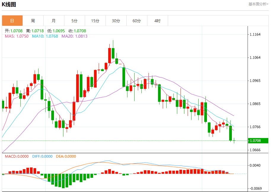 周三晚间,美元指数现报104.865,跌幅0%,现对美元兑欧元、英镑、日元主要货币对分析表述如下: 欧元/美元 汇价高见1.0718,低见1.0695。上一交易日,汇价收于1.0708。 日内建议:可以在1.0735---1.0670的区间上限卖出,有效破位35个点止损,目标在区间的下限。
