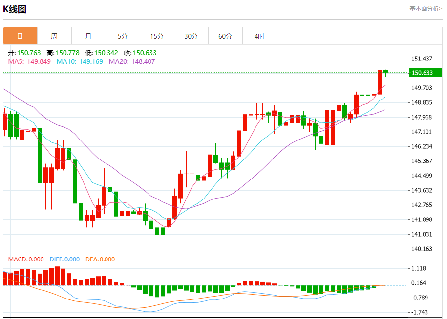 周三盘中,美元/日元报150.665,跌幅0.08%。 今日分析:在150.10之上,看涨,目标价位为151.00,然后为151.40。 技术点评:RI技术指标向上运行。 支撑位:150.10149.70149.30 阻力位:151.80151.40151.00 (亚汇网编辑:冰凡)