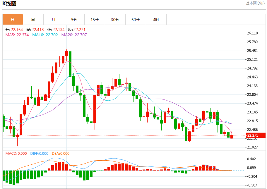 周四盘中,现货白银报22.269,涨幅0.32%。 今日分析:在22.15之上,看涨,目标价位为22.48,然后为22.62。 技术点评:RI技术指标缺乏下降动能 支撑位:22.1522.0521.90 阻力位:22.7522.6222.48 (亚汇网编辑:冰凡)