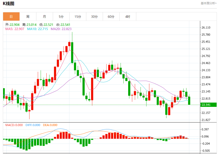 周四盘中,现货白银报22.541,跌幅1.61%。 今日分析:在22.83之下,看跌,目标价位为22.45,然后为22.33。 技术点评:跌破22.83支撑位后,将会引发加速下跌至目标位22.45。 支撑位:22.4522.3322.20 阻力位:23.1623.0222.83 (亚汇网编辑:冰凡)