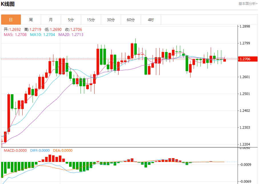 周一盘中,英镑/美元报1.2707,涨幅0.03%。 今日分析:在1.2730之下,看跌,目标价位为1.2675,然后为1.2655。 技术点评:只要1.2730阻力位不被突破,向下跌破1.2675位置的风险很高。 支撑位:1.26751.26551.2635 阻力位:1.27751.27551.2730 (亚