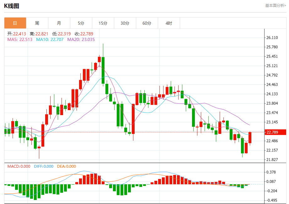 周三盘中,现货白银报22.928,涨幅2.26%。 今日分析:在22.45之上,看涨,目标价位为22.85,然后为23.03。 技术点评:RI技术指标看涨,有进一步向上趋势。 支撑位:22.4522.3222.20 阻力位:23.2023.0322.85 (亚汇网编辑:冰凡)