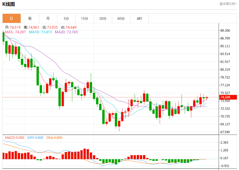 周三盘中,WTI原油报74.760,涨幅0.36%。 今日分析:在74.95之下,看跌,目标价位为73.60,然后为73.10。 技术点评:RI技术指标看跌,有进一步下降空间。 支撑位:73.6073.1072.55 阻力位:75.4575.1574.95 (亚汇网编辑:冰凡)