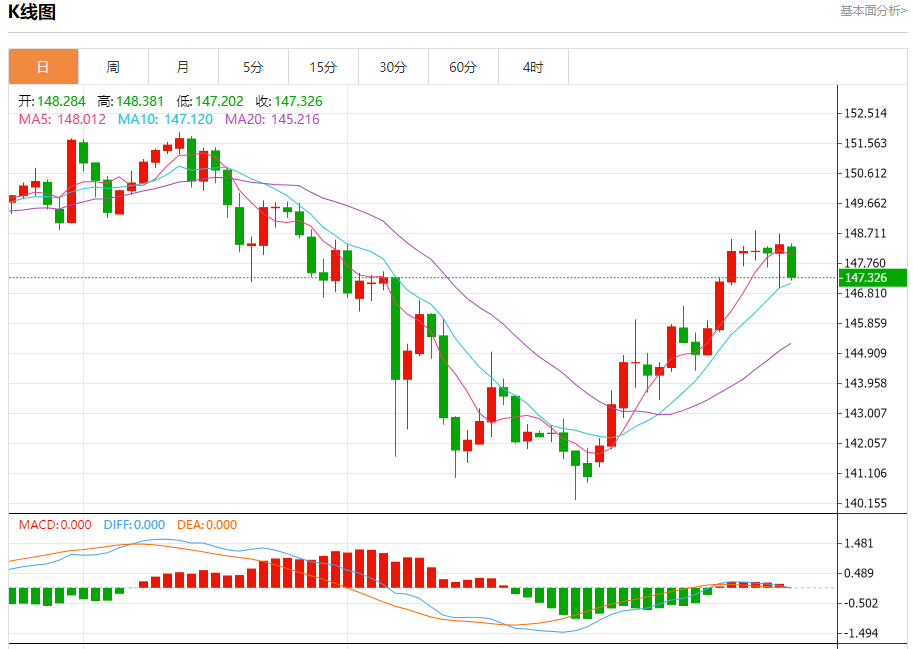 周三纽盘,美元兑日元交投于147.283,跌幅为0.73%。 日元基本面分析 据日本《朝日新闻》1月24日报道,日本银行(央行)在23日举行的货币政策会议上,决定继续实施量化宽松政策。行长植田和男表现出谨慎态度,主张密切关注能否实现工资和物价同时上涨的“经济良性循环”。但他也表示,“达