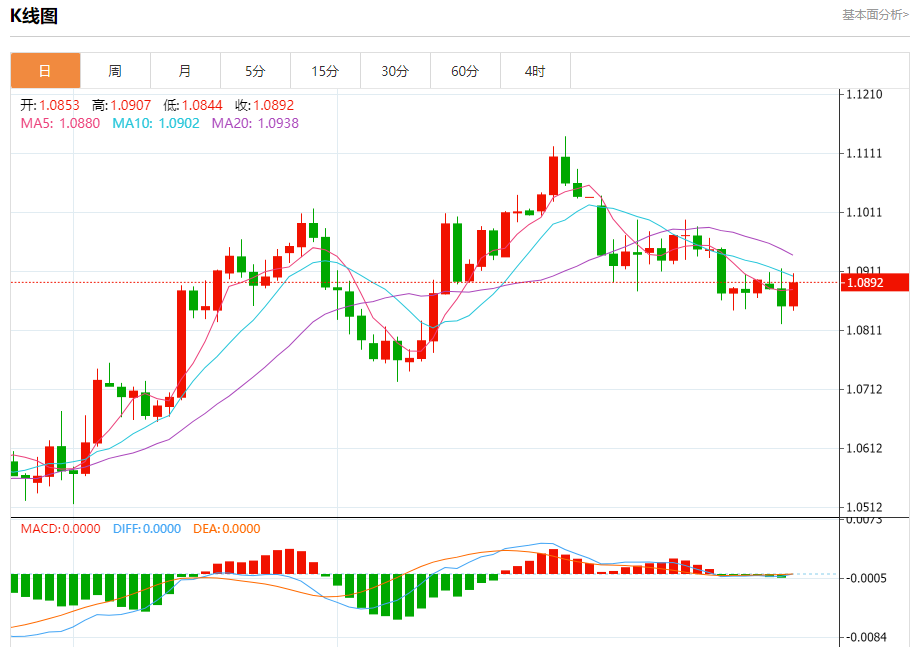 周三晚间,美元指数现报103.189,跌幅0.35%,现对美元兑欧元、英镑、日元主要货币对分析表述如下: 欧元/美元 汇价高见1.0907,低见1.0844。上一交易日,汇价收于1.0853。 日内建议:可以在1.0900---1.0805的区间上限卖出,有效破位40个点止损,目标在区间的下限。