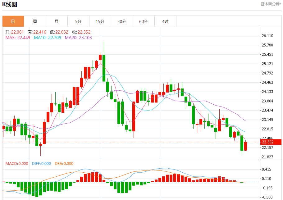 周二盘中,现货白银报22.328,涨幅1.16%。 今日分析:在22.10之上,看涨,目标价位为22.44,然后为22.62。 技术点评:在22.10之上,为多头信号,向上的目标位为22.44。 支撑位:22.1021.9021.75 阻力位:22.8422.6222.44 (亚汇网编辑:冰凡)