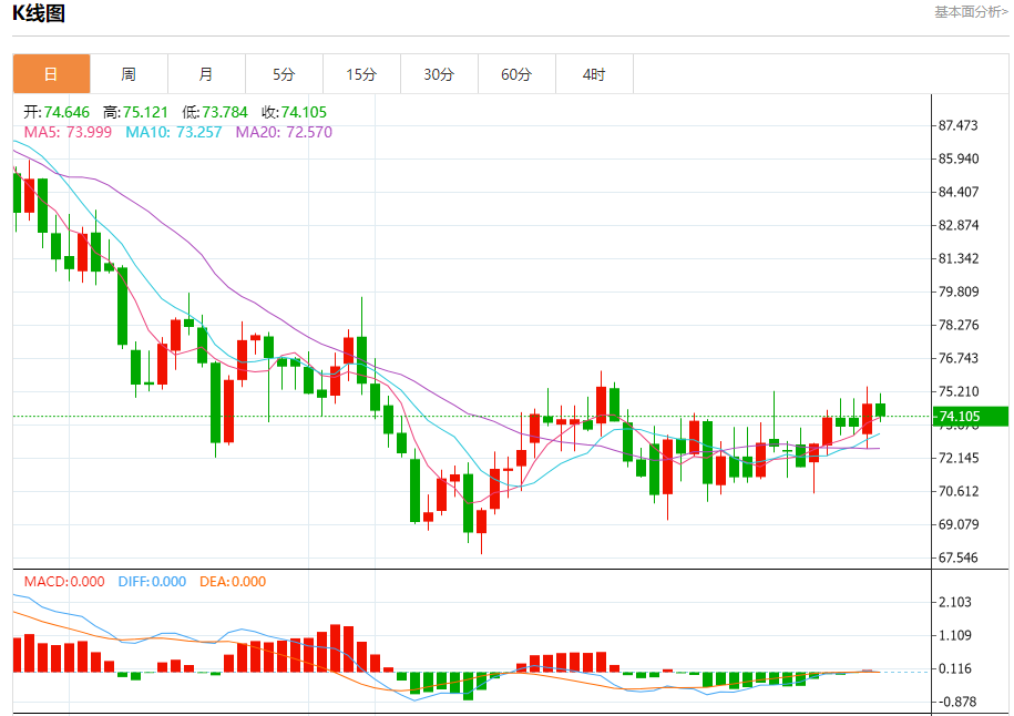 周二盘中,WTI原油报74.046,跌幅0.79%。 今日分析:在74.60之下,看跌,目标价位为73.75,然后为73.10。 技术点评:跌破74.60,为空头信号,向下的目标将会是73.75。 支撑位:73.7573.1072.55 阻力位:75.4575.1574.60 (亚汇网编辑:冰凡)