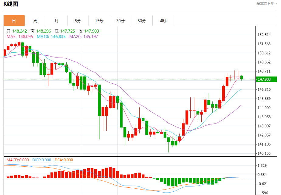 今日周一,截止目前美元兑日元报147.91,下跌0.16%。 日元基本面行情分析 日本央行将于周二召开政策会议,任何有关货币政策转变的暗示都可能推动日元大幅走高。市场预计日本央行将按兵不动,不过以透明度不高著称的日本央行此前曾令市场感到意外。 机构分析师KyFihr表示