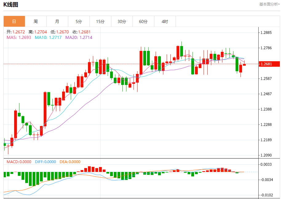 周四盘中,英镑/美元报1.2682,涨幅0.04%。 今日分析:在1.2655之上,看涨,目标价位为1.2705,然后为1.2740。 技术点评:RI技术指标向上运行。 支撑位:1.26551.26351.2615 阻力位:1.27601.27401.2705 (亚汇网编辑:冰凡)