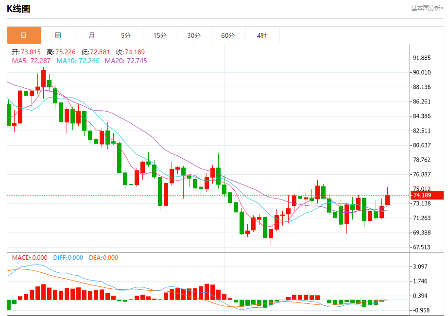 周五盘中,WTI原油报74.230,涨幅1.92%。 今日分析:在73.85之上,看涨,目标价位为75.50,然后为76.20。 技术点评:上升突破73.85阻力位后,将会引发加速上涨至目标位75.50。 支撑位:73.8573.2572.80 阻力位:77.0076.2075.50 (亚汇网编辑:冰