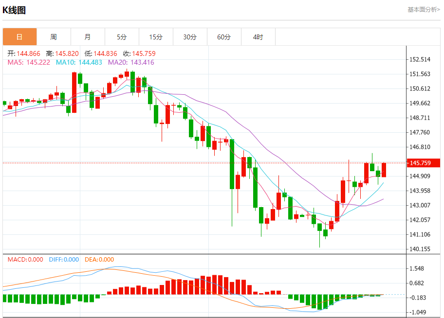 今日周一,截止目前美元兑日元报145.764,上涨0.60%。 日元基本面行情分析 据知情人士透露,日本央行官员在本月晚些时候召开政策会议时,可能会讨论下调对经济增长和包括能源价格在内的通胀指标的预测,尽管他们对价格趋势的总体评估保持不变。 知情人士透露,由于油价走低,