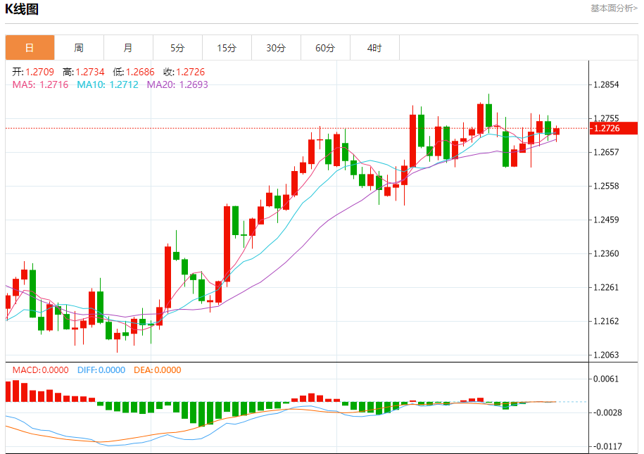 周三盘中,英镑/美元报1.2727,涨幅0.14%。 今日分析:在1.2685之上,看涨,目标价位为1.2750,然后为1.2770。 技术点评:RI技术指标向上运行。 支撑位:1.26851.26701.2650 阻力位:1.27901.27701.2750 (亚汇网编辑:冰凡)