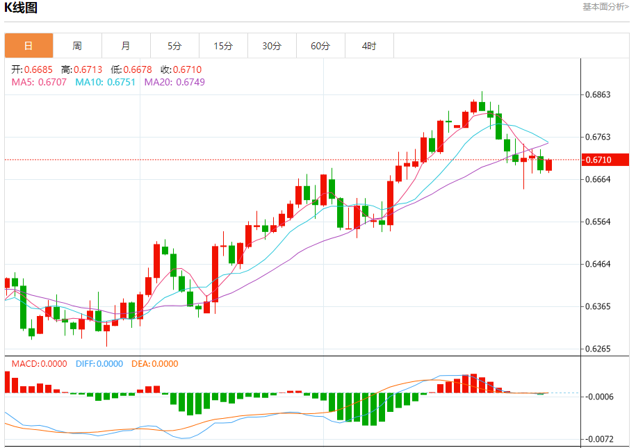 今日周三,澳元兑美元报0.6709,涨幅0.33%;美元兑加元报1.3373,跌幅0.13%;美元兑瑞郎报0.8530,涨幅0.08%。 澳元兑美元汇率分析 技术点评:RI技术指标向上运行。 阻力位:0.67500.67350.6720 支撑位:0.66750.66600.6645 美元兑加元汇率分析
