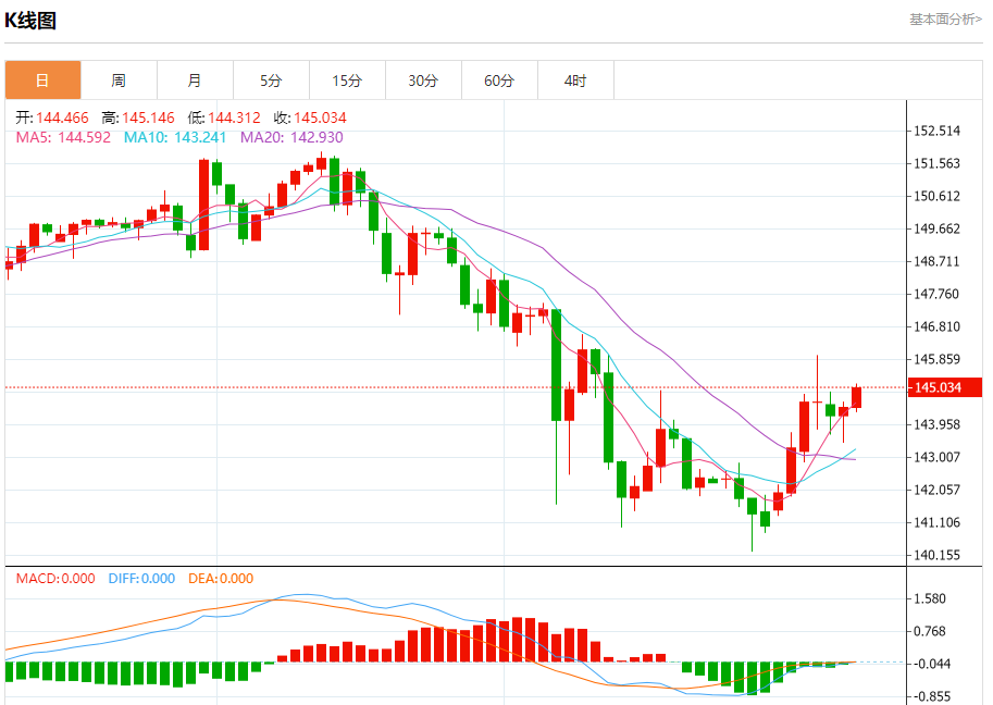 周三盘中,美元/日元报145.066,涨幅0.41%。 今日分析:在144.30之上,看涨,目标价位为145.40,然后为145.80。 技术点评:RI技术指标向上运行。 支撑位:144.30143.95143.65 阻力位:146.20145.80145.40 (亚汇网编辑:冰凡)