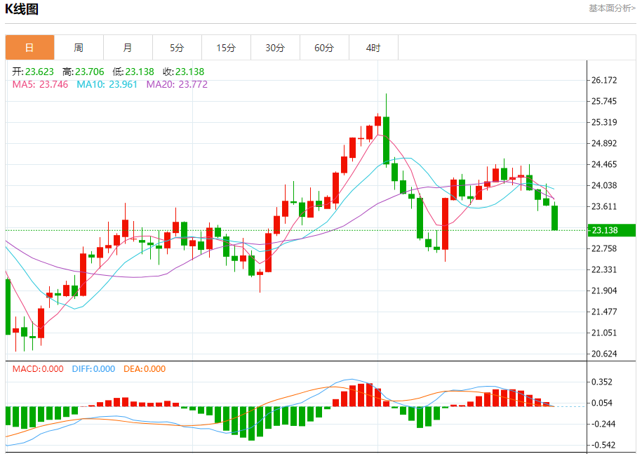 周三盘中,现货白银报23.125,跌幅2.15%。 今日分析:在23.43之下,看跌,目标价位为23.20,然后为23.00。 技术点评:RI技术指标看跌,有进一步下降空间。 支撑位:23.2023.0022.80 阻力位:23.7123.6023.43 (亚汇网编辑:冰凡)