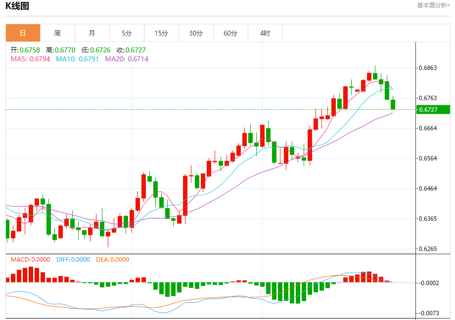 今日周三,澳元兑美元报0.6727,跌幅0.47%;美元兑加元报1.3346,涨幅0.18%;美元兑瑞郎报0.8539,涨幅0.41%。 澳元兑美元汇率分析 技术点评:RI技术指标向下运行。 阻力位:0.68150.67900.6780 支撑位:0.67200.67000.6685 美元兑加元汇率分析