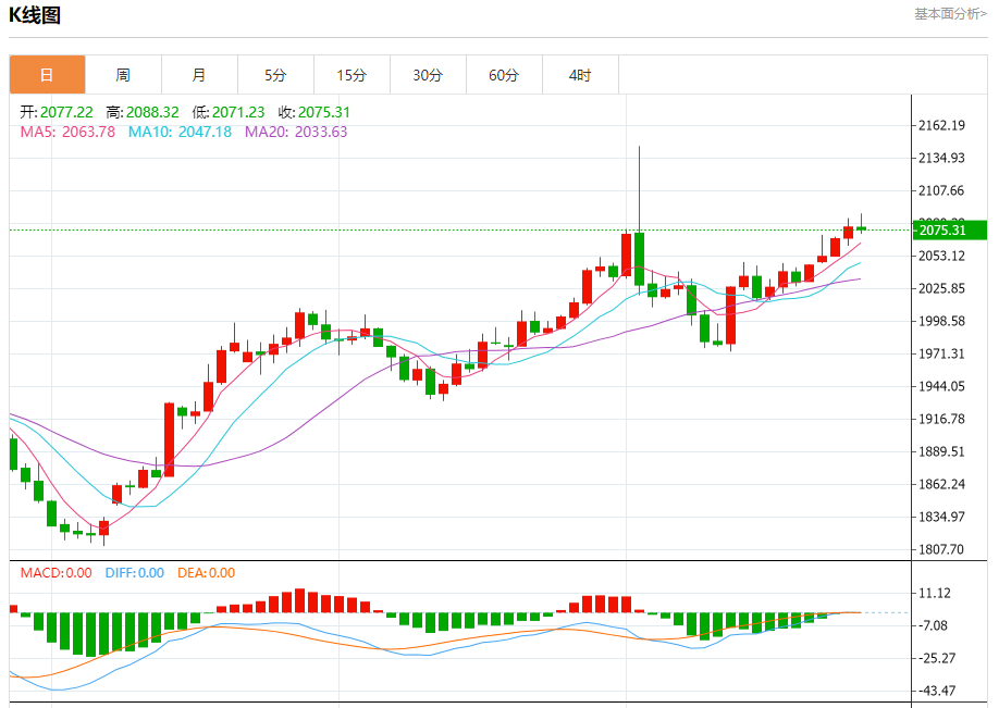 周四盘中,现货黄金报2075.13,跌幅0.11%。 今日分析:在2064.00之上,看涨,目标价位为2088.00,然后为2095.00。 技术点评:即使我们不能排除持续调整的可能性,其时间长度上,应该是有限的。 支撑位:2064.002056.002051.00 阻力位:2100.002095.002088.00